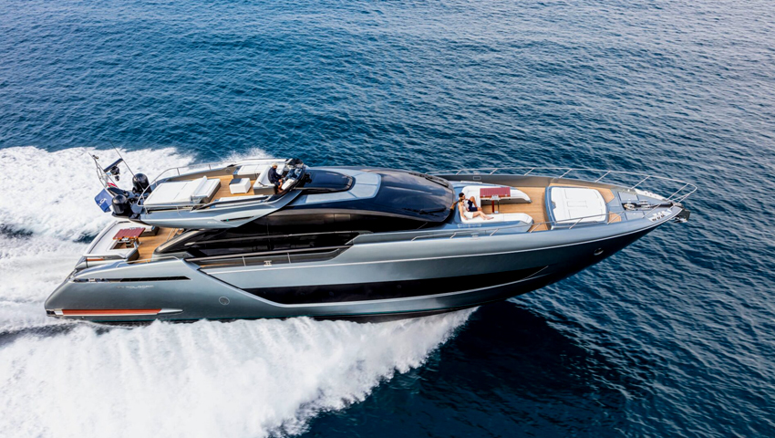 This Riva masterpiece is a partnership product between Officina Italiana Design, the Product Strategy Committee led by Piero Ferrari and the Engineering Department of the Ferretti Group. The result is a magnificent yacht with a bold new look in harmony between the past and the present, in a concept that unites innovative materials such as carbon (present in futuristic yachts) and inlay mahogany with decorative steel for a vintage touch. With an integrated “sport-fly” bridge that reinforces its elegant profile.