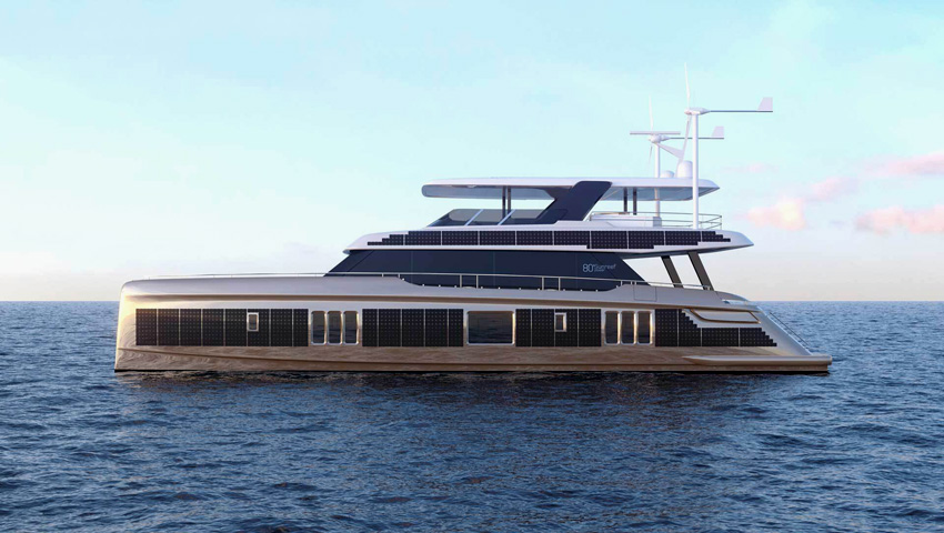 With an energy-saving air conditioning system and smart energy management, this electric yacht sets new standards in luxury and sustainability to be used in future eco-cruising yachts.
