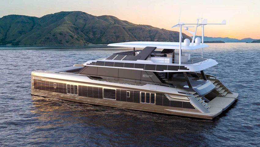 Thanks to innovative technology, the 80 Sunreef Power Eco provides unrivaled solar power for extended range and a clean cruising experience. “The climate impact of large motor yachts is significant. We take extensive measures to impact climate crises, therefore, we could only consider a motor yacht if it incorporated technologies that are rapidly growing in other sectors, such as solar energy and electric vehicles”, said the owner of Sunreef.