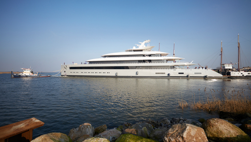 The 99.95 meter luxury yacht named Moonrise was presented at the Makkum shipyard, which is the largest luxury yacht built in the Netherlands so far.
