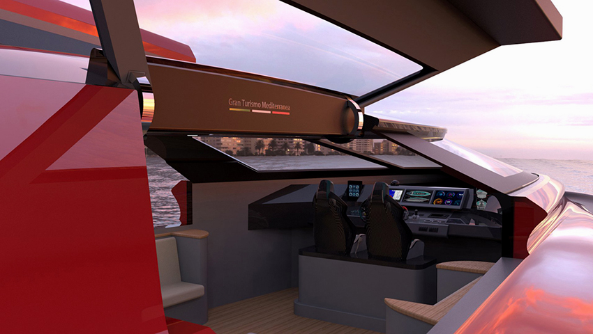 The Gran Turismo Mediterranea, (GTM) which according to Lazzarini “highlights the yacht's ability to cruise at high speeds with extreme navigation comfort”. For this reason it was called hyperyacht, as with maximum comfort and luxury for guests it can easily reach an incredible speed of 70 knots. “We tried to imagine what a Ferrari of the seas would be like,” said the Italian design studio.