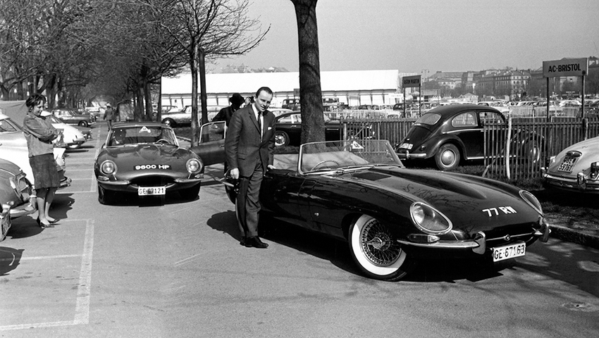 Jaguar E-Type Coupé “9600 HP” was one of the first E-Type to be unveiled for special guests at the Parc des Eaux Vives. The day before its presentation in Switzerland, the magnificent E-Type Coupé was still in Coventry, in the United Kingdom. He was driven all night before to be able to arrive in time for his presentation at the Geneva Motor Show.