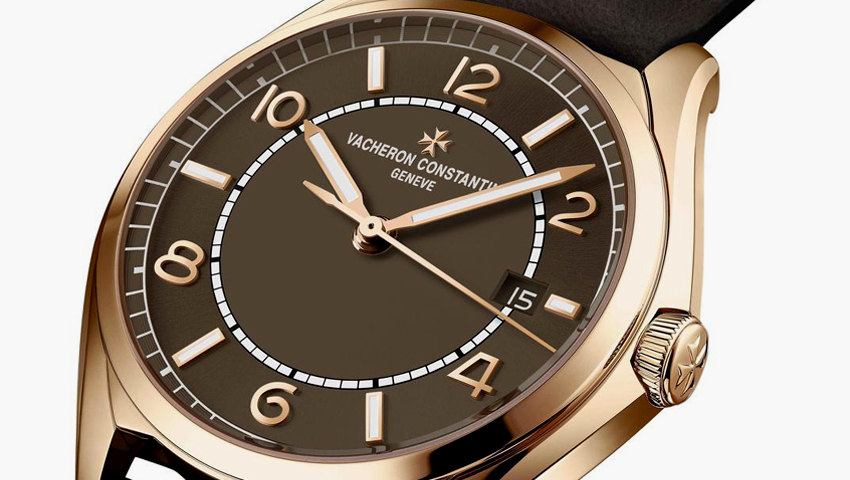 A próxima marca é Vacheron Constantin com o seu Fiftysix, conjuga um visual vintage dos anos 50 com um toque de moderno. Apresenta uma versão com um calendário completo exibindo no mostrador a fase do dia, data, mês e lua. E numa outra versão menos complexa oferece uma janela de data com um movimento automático.